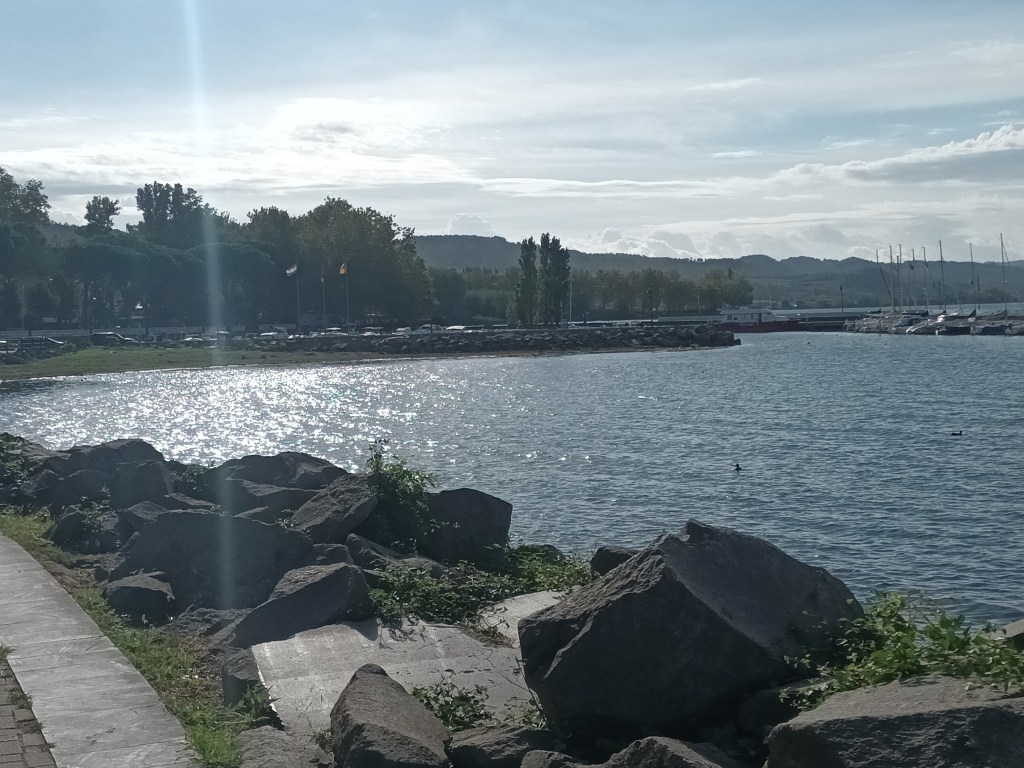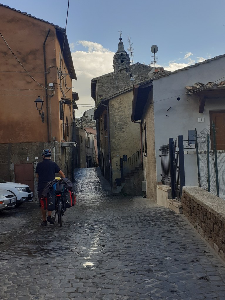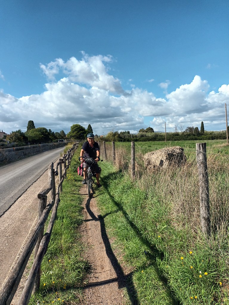 Ce soir, mercredi 5 octobre, on est déjà à 200kms de Rome et 57 kms de Naples qu’on atteindra demain. On longe la mer depuis hier midi. La côte entre Rome et Mondragone où on dort ce soir, tour à tour rocheuse puis sablonneuse est superbe. Quelques îlots au loin. Il fait chaud , on roule bien. Tutto bene.