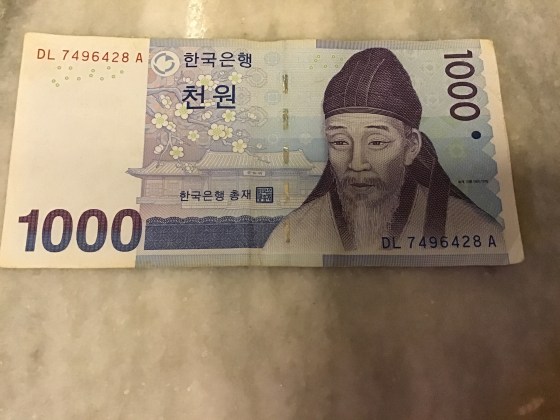 1000 wons = 70 centimes. Pour convertir, on divise le nombre qu’on voit par 10000 et on multiplie par 7. La plupart des guesthouses sont autour de 40 000 wons ( 28 €).
