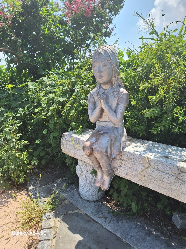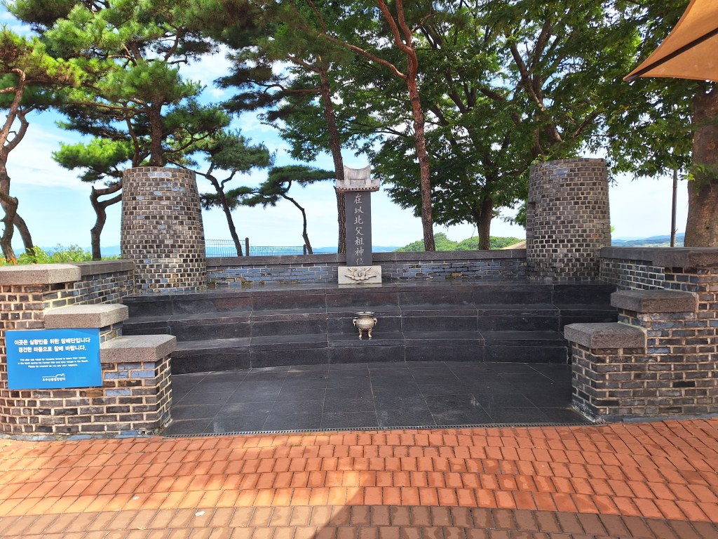 Devant l’observatoire, un autel dédié aux Coréens forcés de quitter leur maison pendant la guerre de Corée et d’être déplacés. Toute personne peut venir se recueillir et prier. En particulier lors de la nouvelle année, quand chacun fait résonner le drum, en pensant aux familles séparées, le moment est chargé d’émotion nous disait Mark qui est venu y assister. Il est appelé le Drum pour la Réunification.