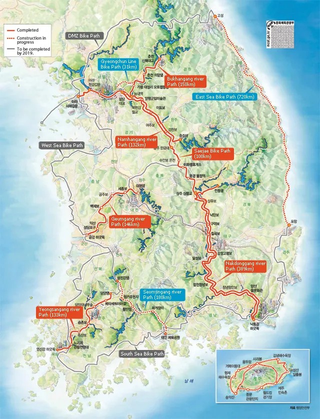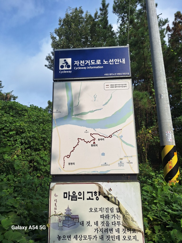 Tout cycliste ayant envie de cycler au pays du matin calme (ou clair ou frais) a entendu parler de cette route permettant de relier Séoul à Busan, ville du sud-est. Elle fait environ 633 kilomètres mais parfois on la quitte pour aller voir un site un peu plus loin. La difficulté dans ce cas est quelquefois de la retrouver.