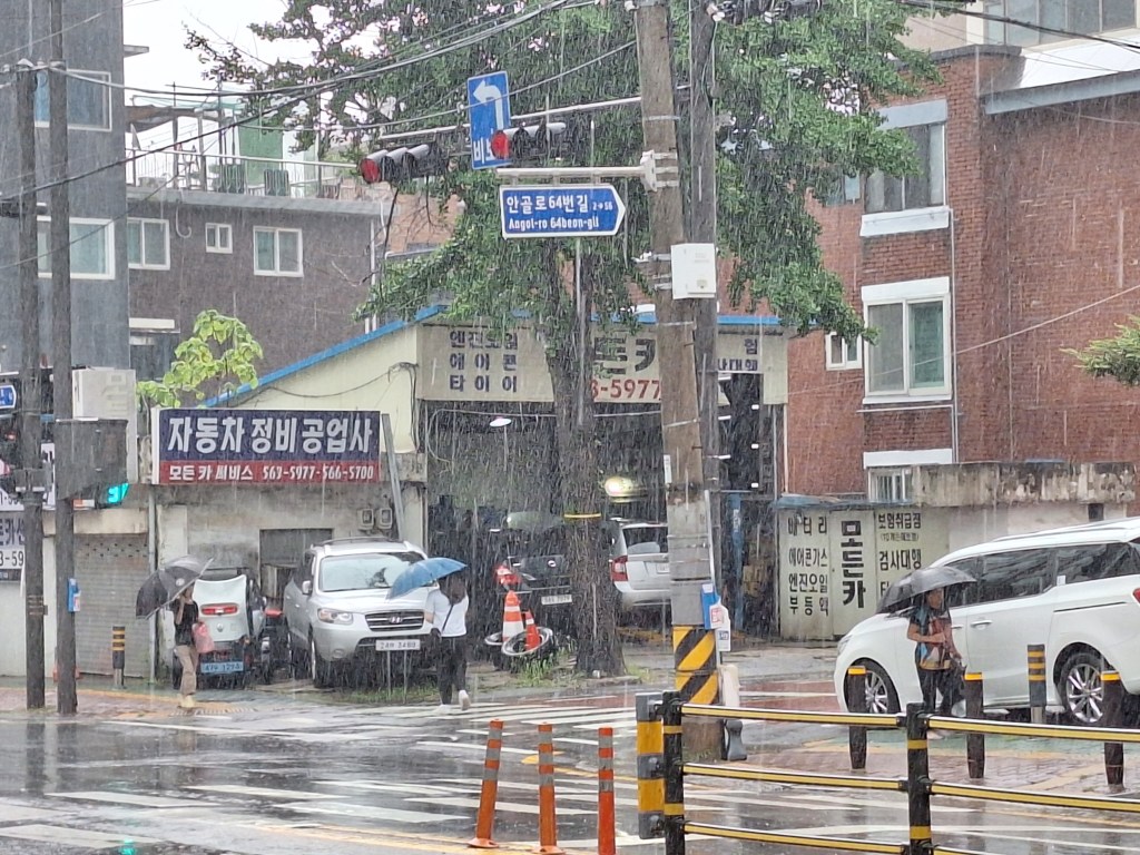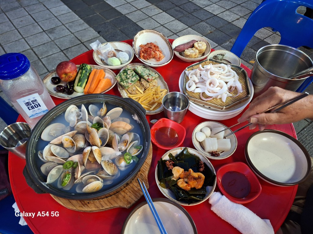 Quand je regarde ces photos, on dirait que le temps est tout le temps pluvieux. On a eu une seule vraie journée complète de pluie qui commençait ainsi, deuxième jour après Séoul.