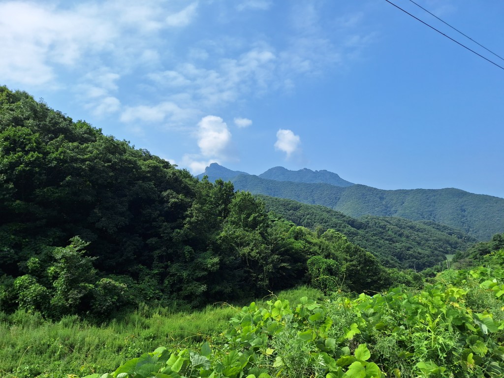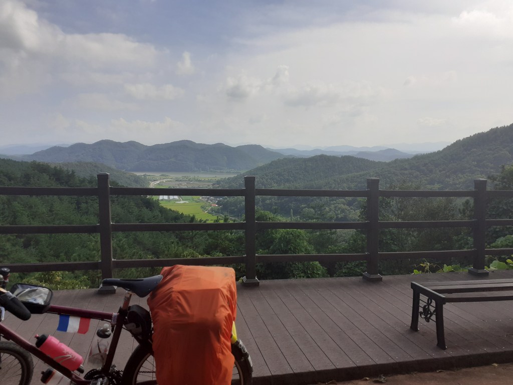 On savait qu’on se compliquait un peu la vie en quittant pour quelque temps la piste cyclable des quatre rivières, mais la difficulté en valait vraiment la peine. Ce sont les plus beaux paysages qu’on aura vus en Corée jusqu’à présent.