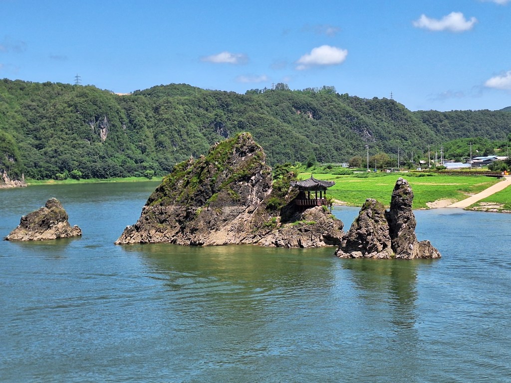 La légende. Un couple vivait autrefois à Danyang et n’arrivait pas à avoir d’enfants. Le mari décida alors de prendre une maîtresse qui, elle, accoucha. Après la naissance, la maîtresse maltraita l’épouse. Un comble. Ce qui ne plut pas aux Dieux du coin. Pour les punir, les trois furent changés en pierre. Au centre, le mari évidemment, à droite, la femme, à gauche, la maîtresse. On se demande quand même pourquoi la femme est punie !