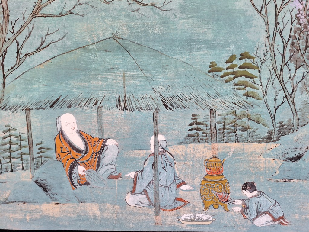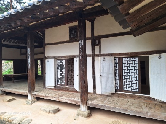 C’est le hanok, maison traditionnelle coréenne. Qu’a t’elle de particulier ? On vit l’hiver à l’intérieur, l’été sur les estrades extérieures et les pièces sont situées autour d’une cour centrale. On voit l’entrée du foyer qui permettait de déposer les braises et ainsi chauffer la maison par le sol.