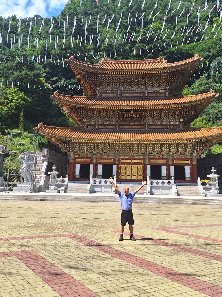 L’autre, c’est Yang. 76 ans. Né à Singapour de parents chinois, il a été pendant treize ans officier sur des navires. Ensuite, il fut dans le contrôle de la sécurité des bateaux. Régulièrement, il visite le monde avec son sac à dos, dort en dortoir et termine la découverte de son cent trente cinquième pays avec la Corée. Il a fait tout le tour de la France il y a quelques années en stop et connaît toutes nos grandes villes….avant de parcourir l’Allemagne en achetant un billet de train à 9€ valable 1 mois ! Un sacré phénomène.