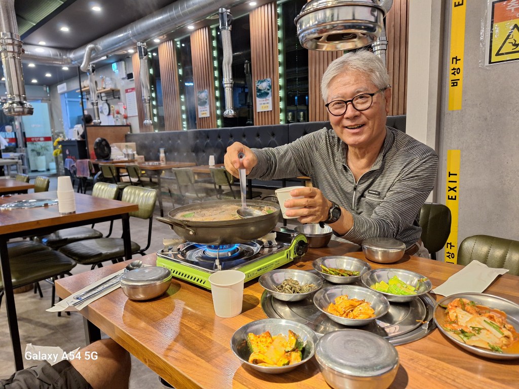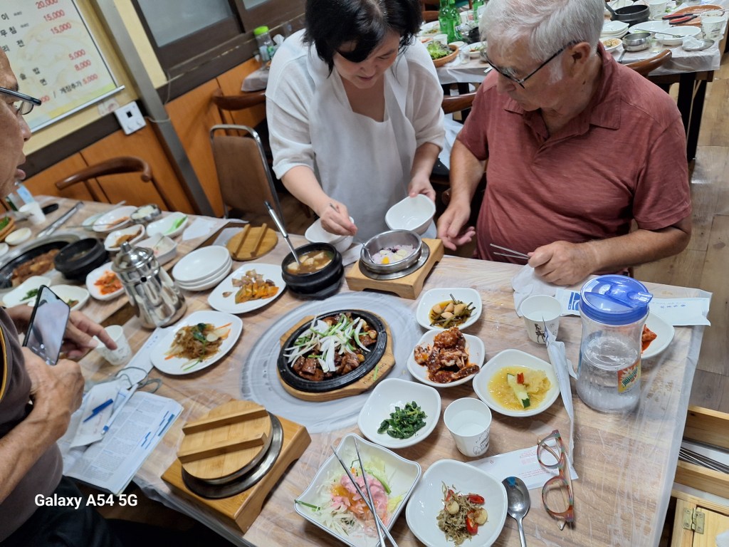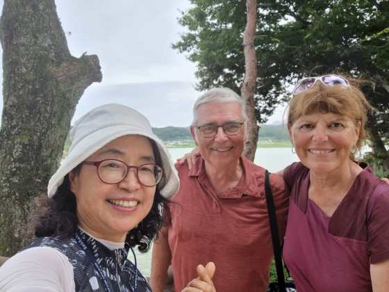 Voilà SongSuk, ancienne prof d’anglais, qui nous a appris beaucoup de choses sur l’école confucéenne et son pays. On a beaucoup de mal à croire qu’elle a 67 ans. Son attention et sa gentillesse vis-à-vis de nous dans quelques heures seront incroyables.