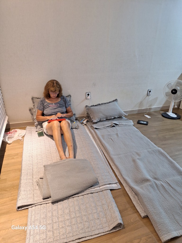 Quand les Coréennes de la guesthouse apprennent la nouvelle, tout le monde saute de joie et applaudit. On aurait dit qu’il s’agissait de leurs affaires. SongSuk me dit que ça arrive à tout le monde d’oublier quelque chose. Un grand Merci à l’esprit confucéen de la Corée.