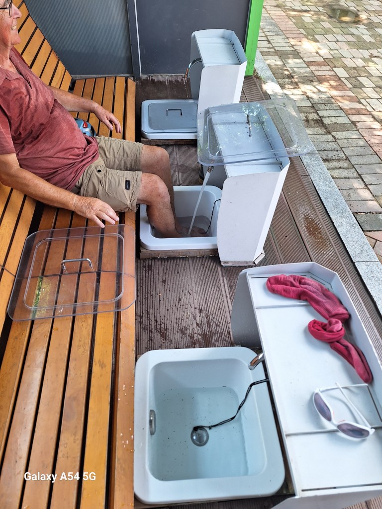 Première raison, on s’arrête pour boire souvent. Bilan carbone : 0 . Bilan H2 / 0 : 1,5 litre toutes les deux heures, et puis on prend des photos, on s’arrête pour voir certaines curiosités, pour se reposer, pour manger, pour échapper à la chaleur, pour écouter ses ischions qui déclarent forfait. Pour tenir sur la durée. On prend le temps. Ou c’est le temps qui nous prend…Et puis qui veut aller loin………