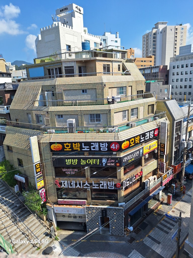 Busan, comme toute grande ville, nous a malmenés les premières heures parce qu’en plus, on arrive en pleine chaleur et qu’on retrouve des côtes pour aller dans certains secteurs. Comme la ville est très étendue, il faut beaucoup de temps pour se rendre d’un secteur à un autre. Mais c’est une ville également très attractive.