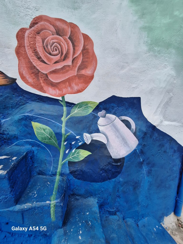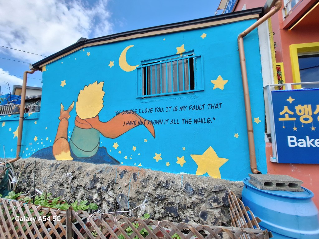 Mais oui, le petit Prince sur toutes les coutures…Un panneau explique qu’il a fait une halte au village de Gamcheon au milieu de son voyage pour venir le contempler.