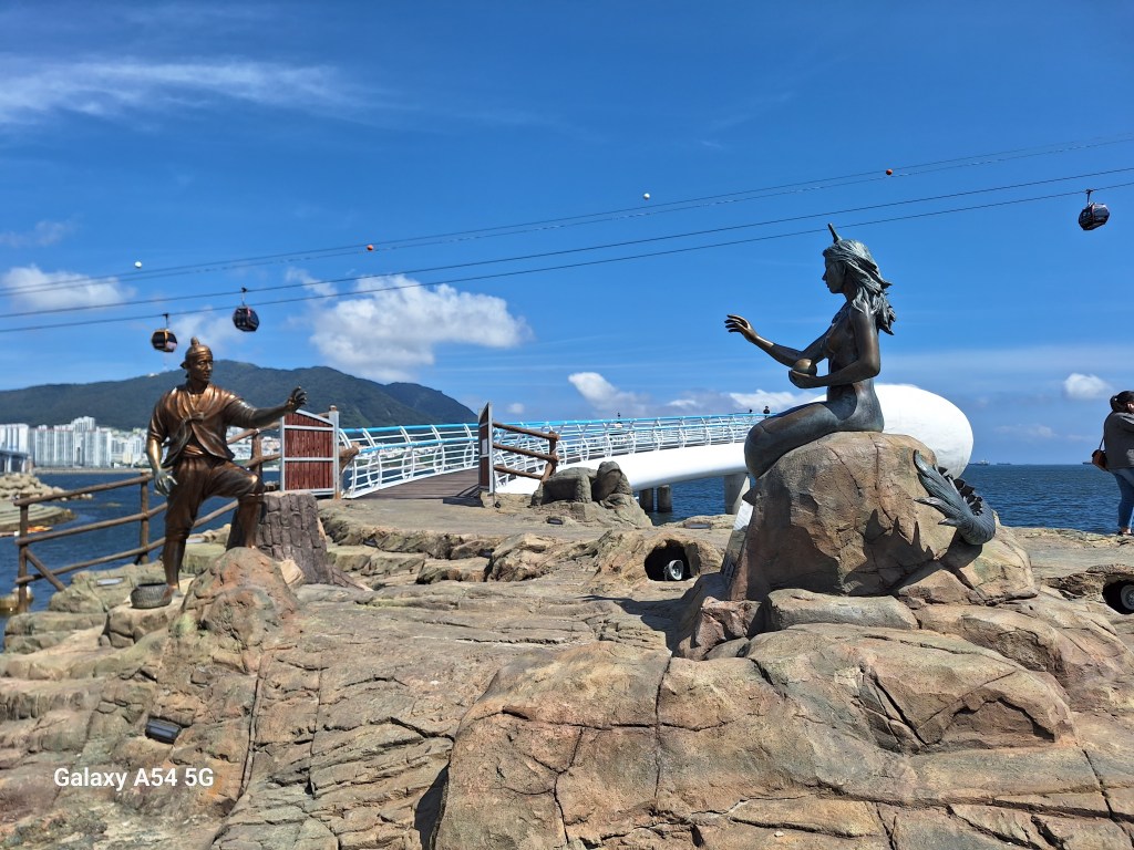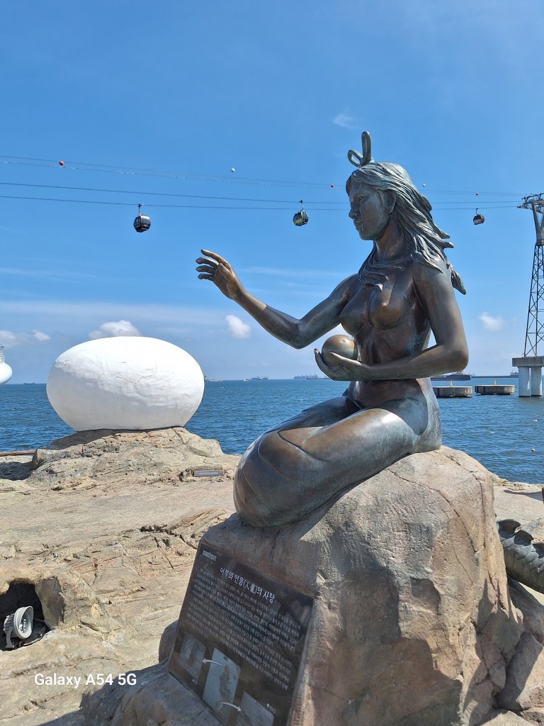 Busan a aussi sa sirène, mignonne devant…Mais quand on voit sa queue….au secours Andersen!On le trouve courageux le garçon.La Corée est le pays des tours. Comme dans de nombreux pays asiatiques, les quartiers traditionnels ont été rasés pour loger tout le monde à la verticale. La densité de population coréenne est 5 fois supérieure à celle de la France. Les Coréens rêvent de vivre dans ces tours dont les appartements sont très bien conçus. Et vue imprenable.
