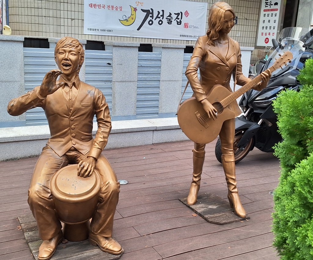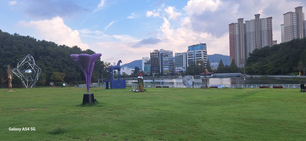 Hier on a appris que les Coréens auraient un jour férié de plus en octobre pour relancer l’économie. Aujourd’hui, en arrivant sur le parc maritime de Jinhae, on a cru que c’était fermé. Quasiment que nous. On est en semaine. Tout le monde travaille.
