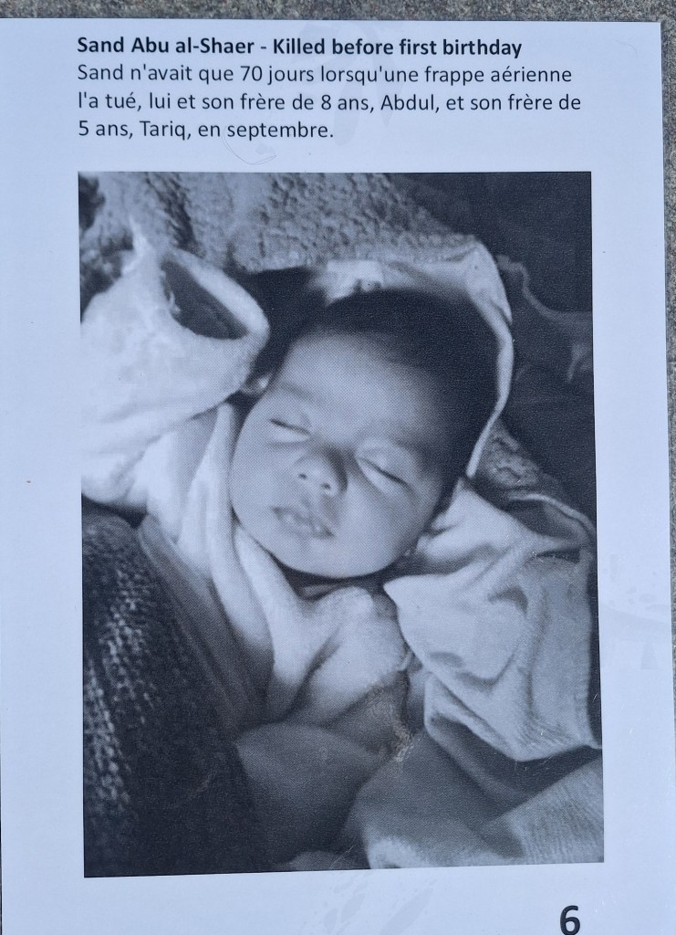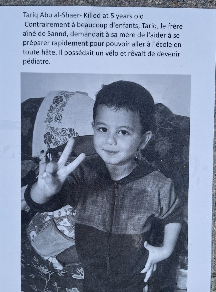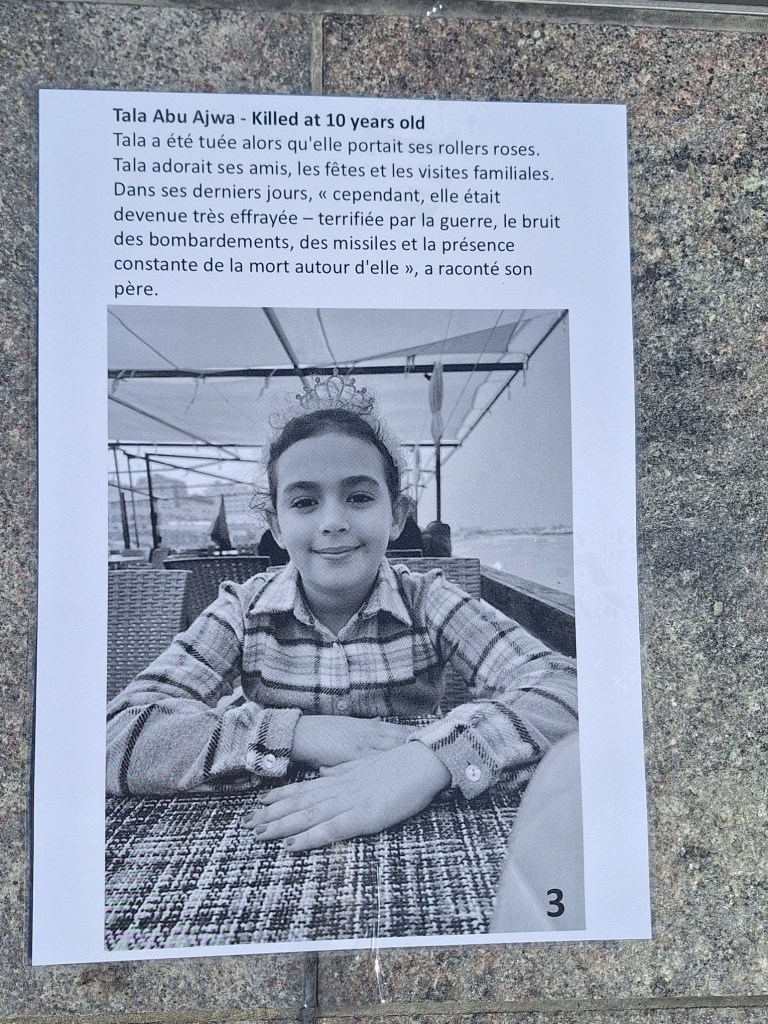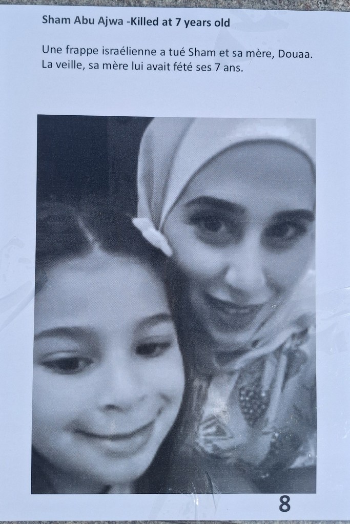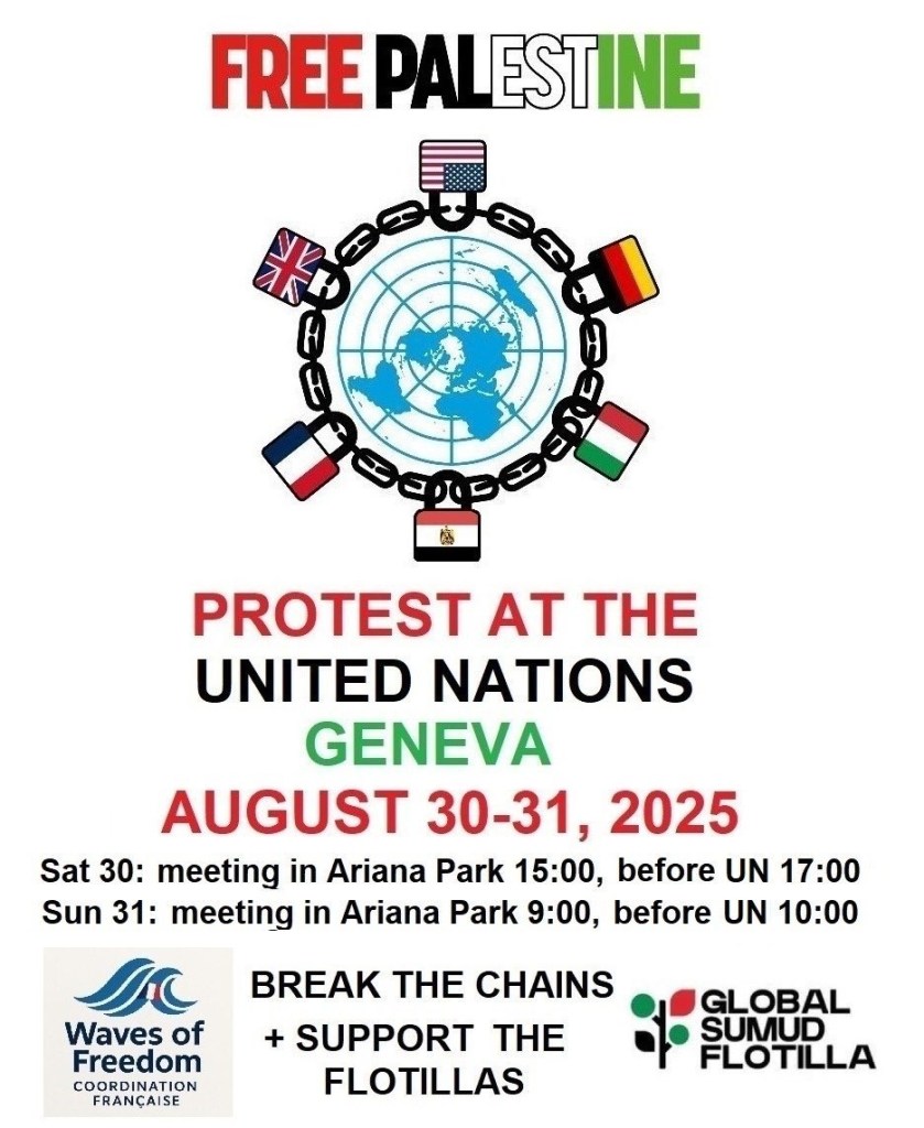 Même si les choses avancent, l’équivalent d’une classe d’enfants est assassinėe tous les jours à Gaza. Alors des anonymes continuent d’organiser des actions d’envergure comme la marche mondiale au Caire en juin, en ce moment même, la plus grande flottille internationale en route vers Gaza partie hier de Barcelone et bientôt de Tunis, Gênes et de Sicile. En sachant qu’Israël interceptera sûrement les navires et arrêteront les passagers. Un risque réel existe puisqu’en 2010, lors de l’abordage de « la première flottille de la Liberté », bien avant celle de Greta Thunberg, l’armée israélienne avait fait 9 morts et 28 blessés parmi les militants.