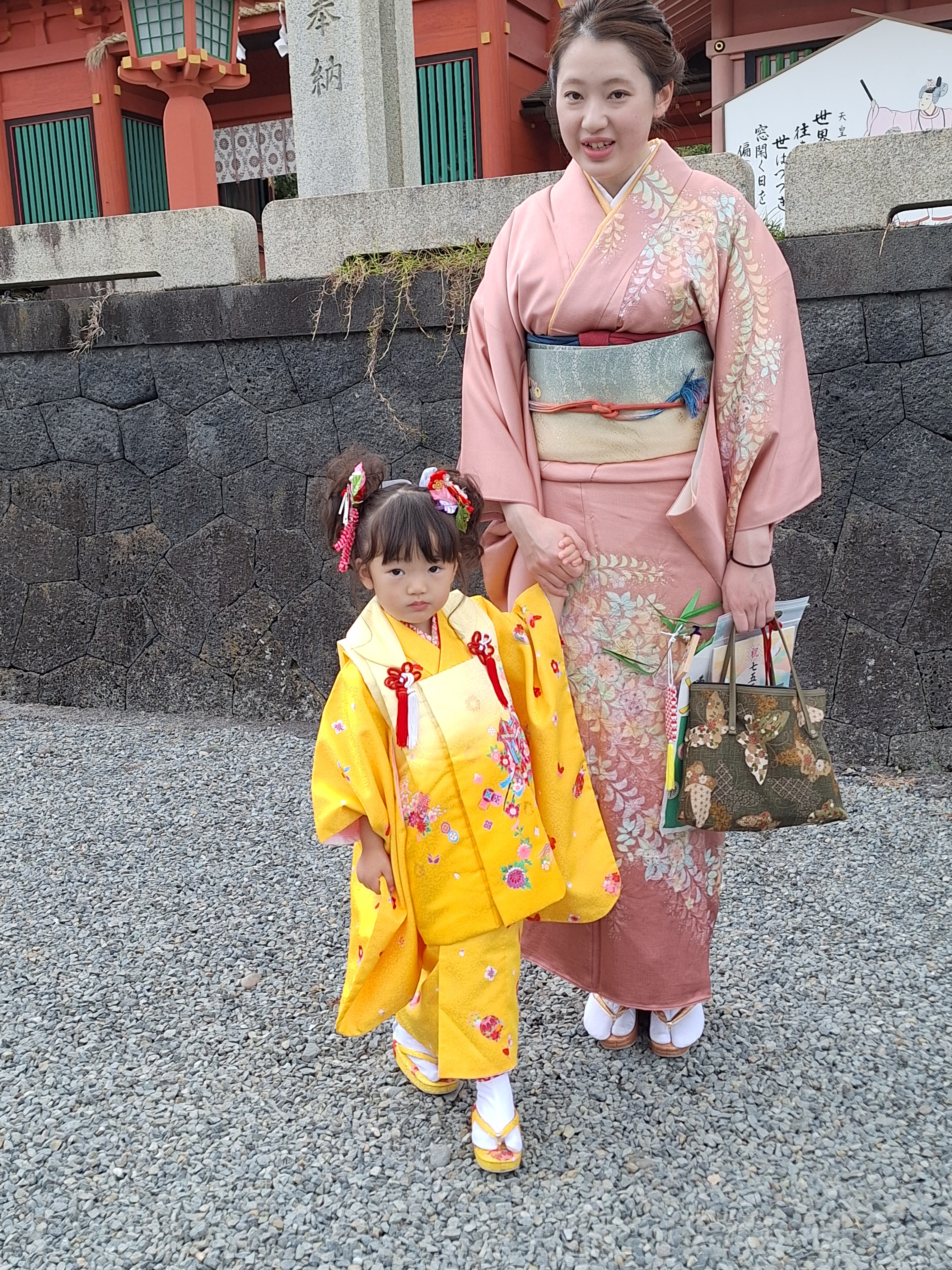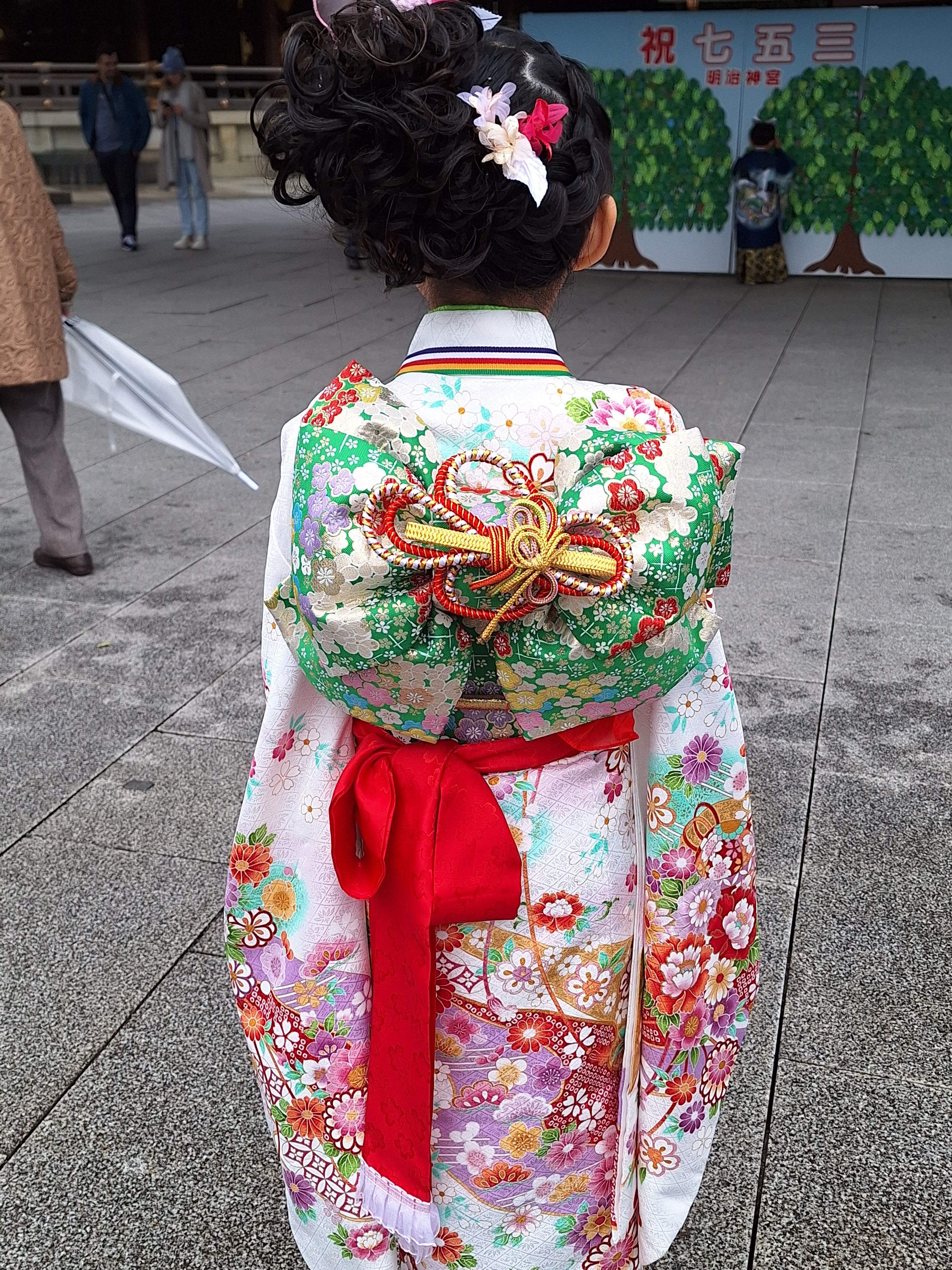 Mi novembre au Japon se déroule ShichiGoSan, une coutume qui célèbre la bonne croissance des enfants de 7,5 et 3 ans. Ils se rendent en famille au temple Shintô le plus proche habillés en kimono. On remercie les Dieux de leur protection et on les prie pour que cela continue. Ces âges correspondent à des rites en quelque sorte.