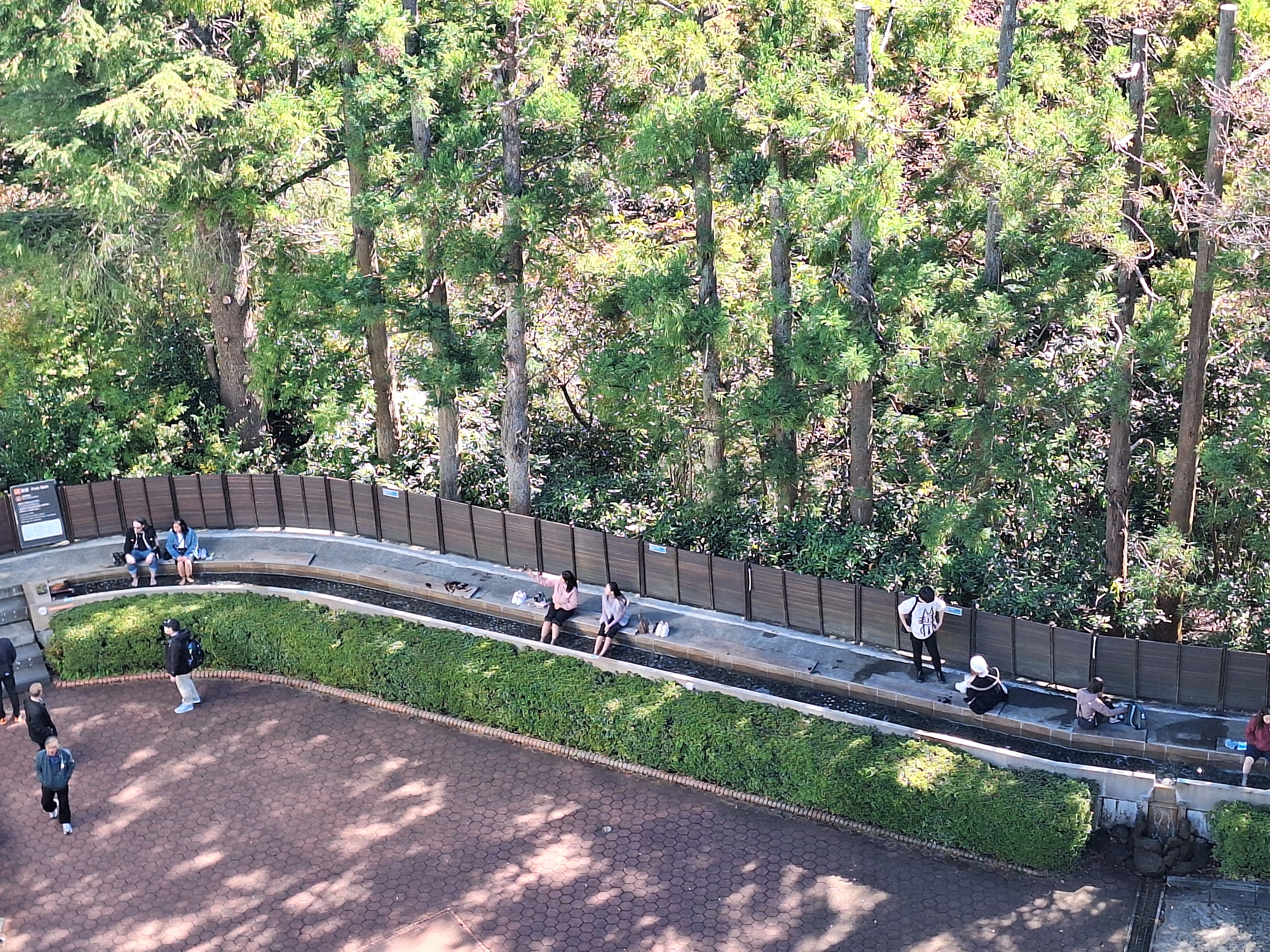 Démarrage de la journée avec un petit déjeuner copieux. Parc près de leur quartier. Nature, calme, beauté. Tout ça à trente minutes du cœur de Tokyo.