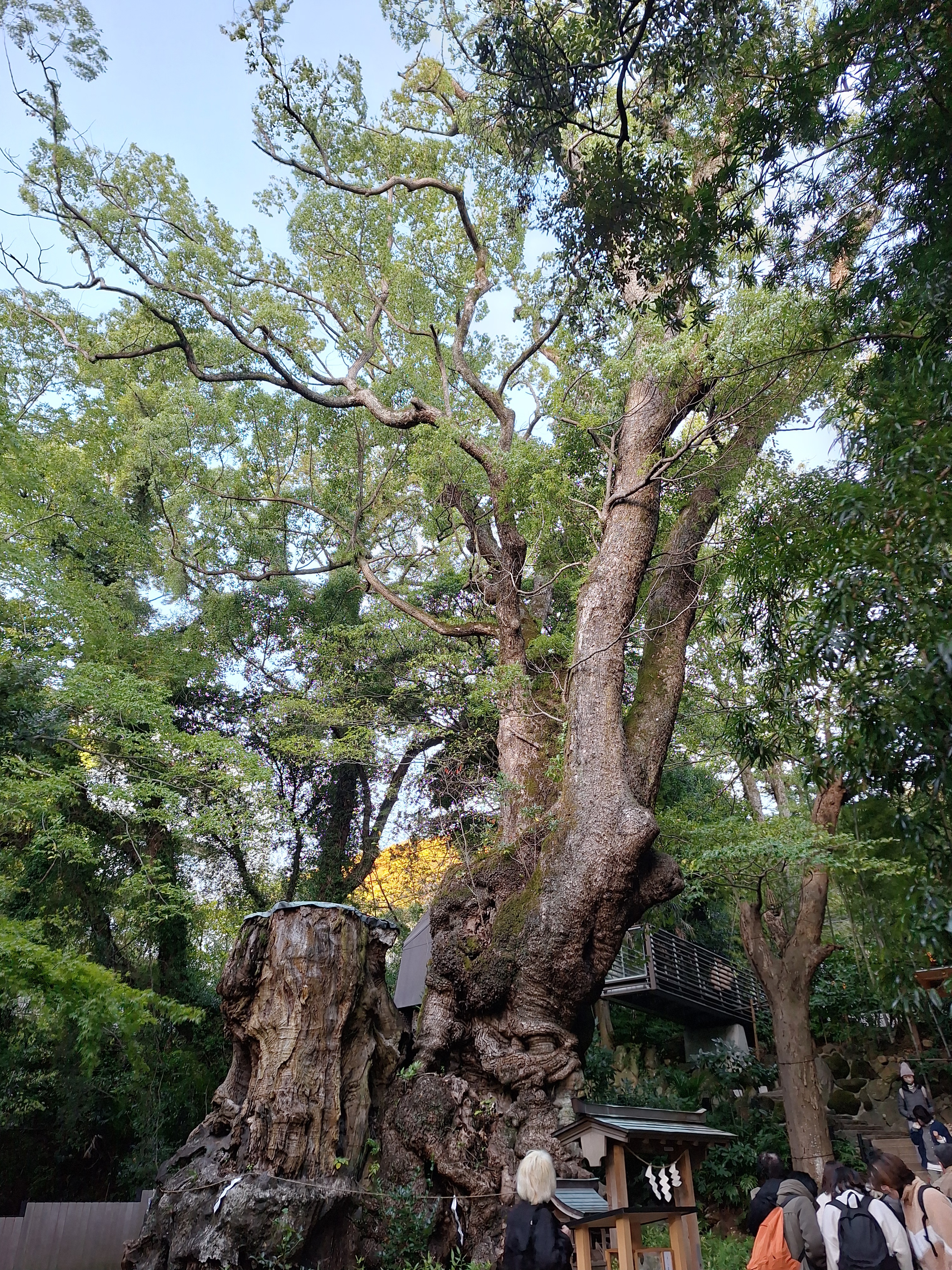 On s’est arrêtés à Atami, petite ville balnéaire avec son port, ses spécialités de fruits de mer, son téléphérique, ses onsens et son arbre millénaire.
