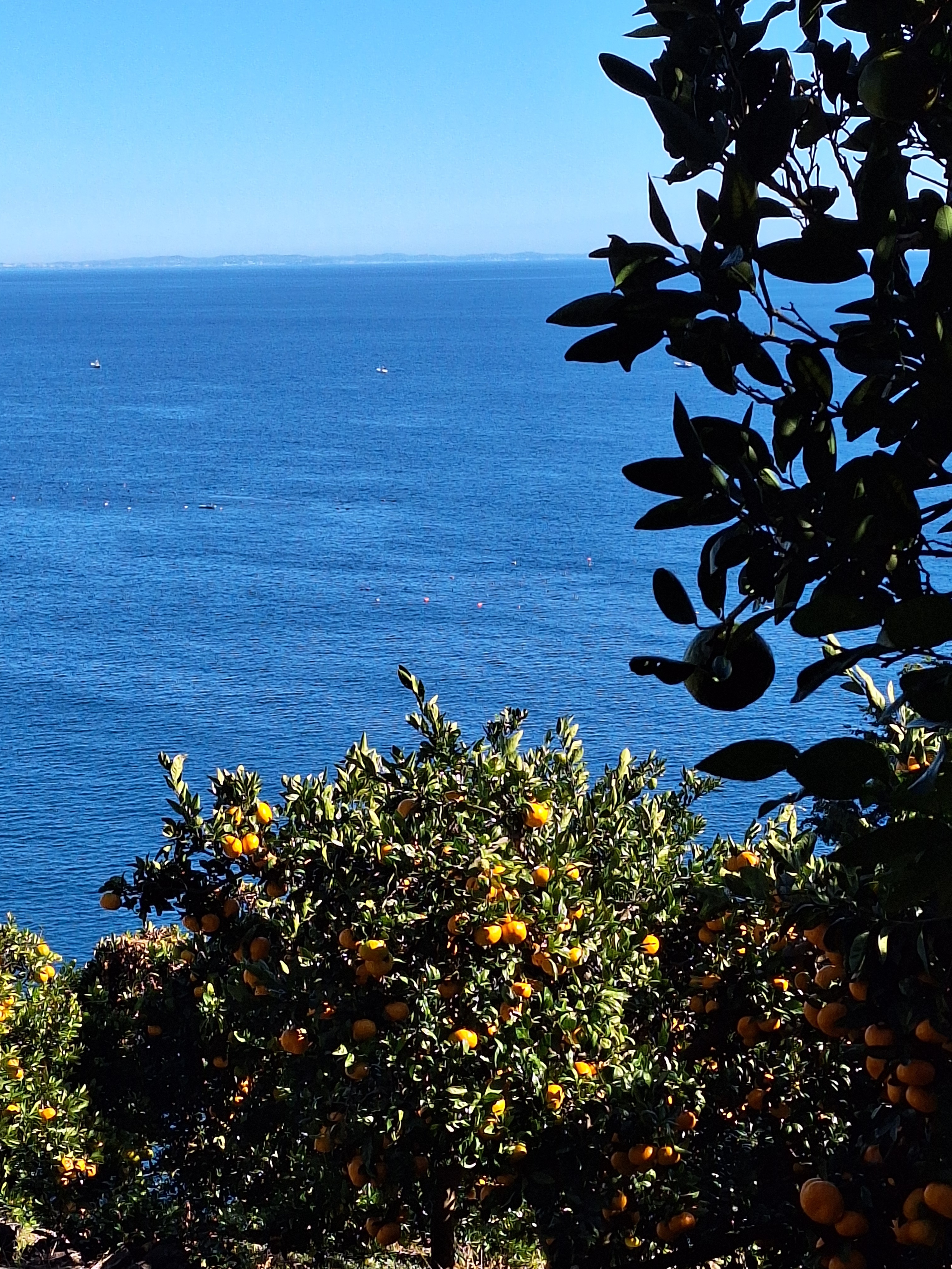 On est toujours dans la baie de Sagami mais on a quitté la péninsule d’Izu. Des maisons superbes surplombent la baie et les Tokyoïtes, la journée de bureau terminée, tombent vite le costume et la cravate pour sauter sur la planche de surf. On pédale entourés de mandariniers dont les fruits sont succulents.