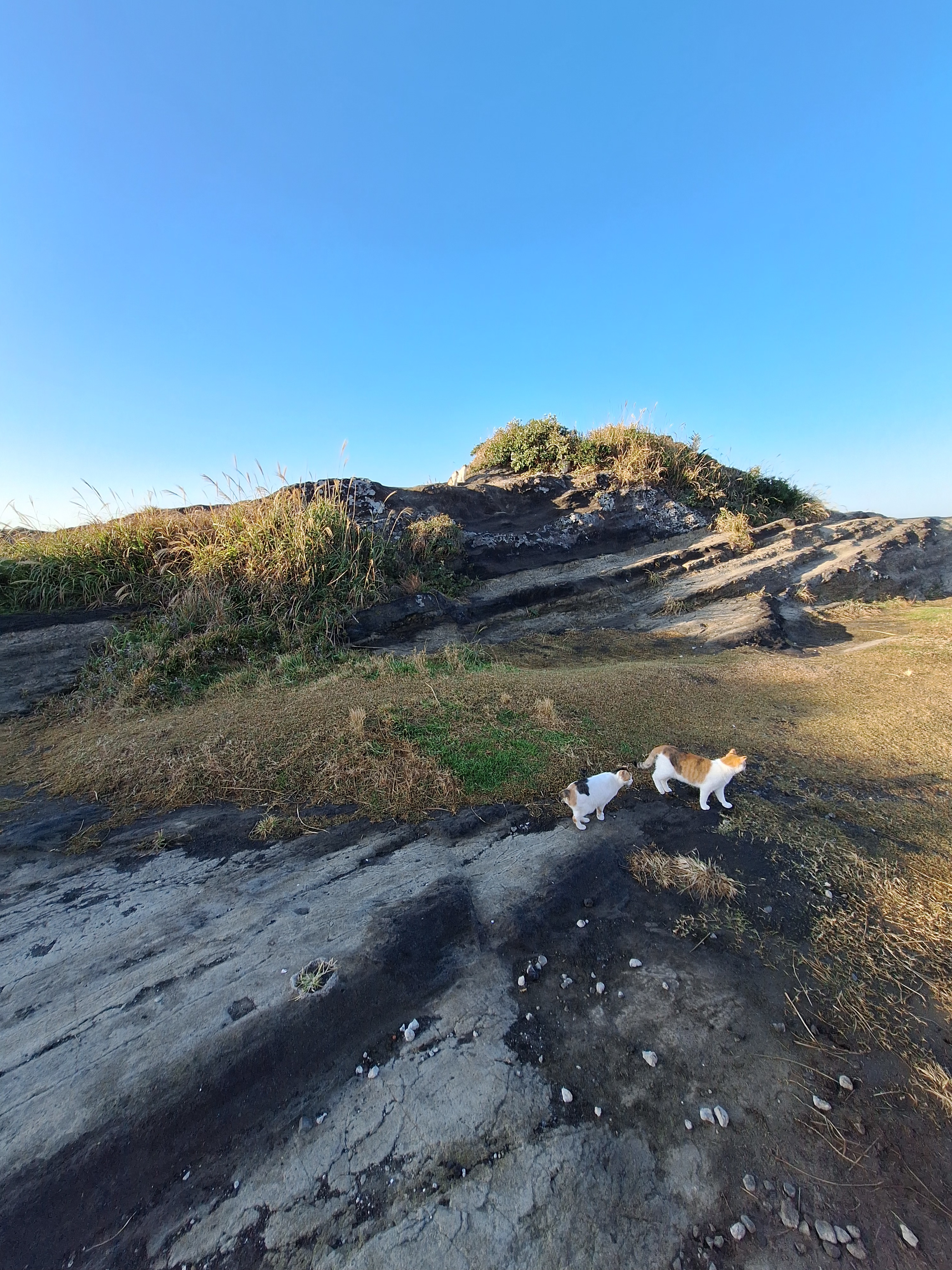 De nombreux pêcheurs sont disséminés un peu partout et reviendront dès 5h le lendemain. Toujours très bien équipés. Le phare de JOGASHIMA.On sera entourés d’au moins une dizaine de chats. De nombreux Japonais se promènent, gros appareil en bandoulière, et attendent l’instant propice pour photographier les félins. C’est très surprenant. Comme dans le café aux chats. Ils instaurent entre eux et l’animal une atmosphère de concentration, d’intimité, de douceur un brin mélancolique. On n’oserait pas les déranger.
