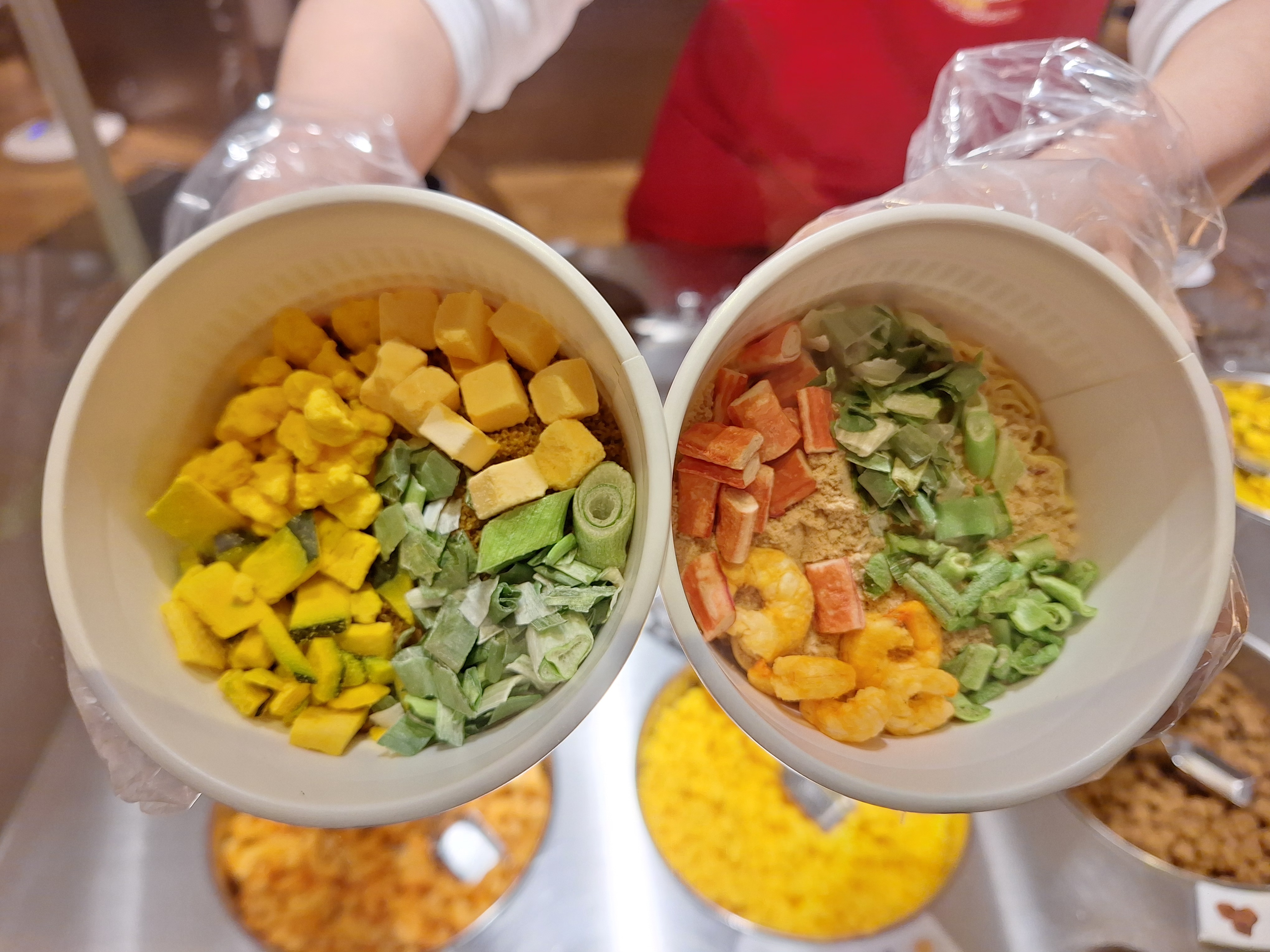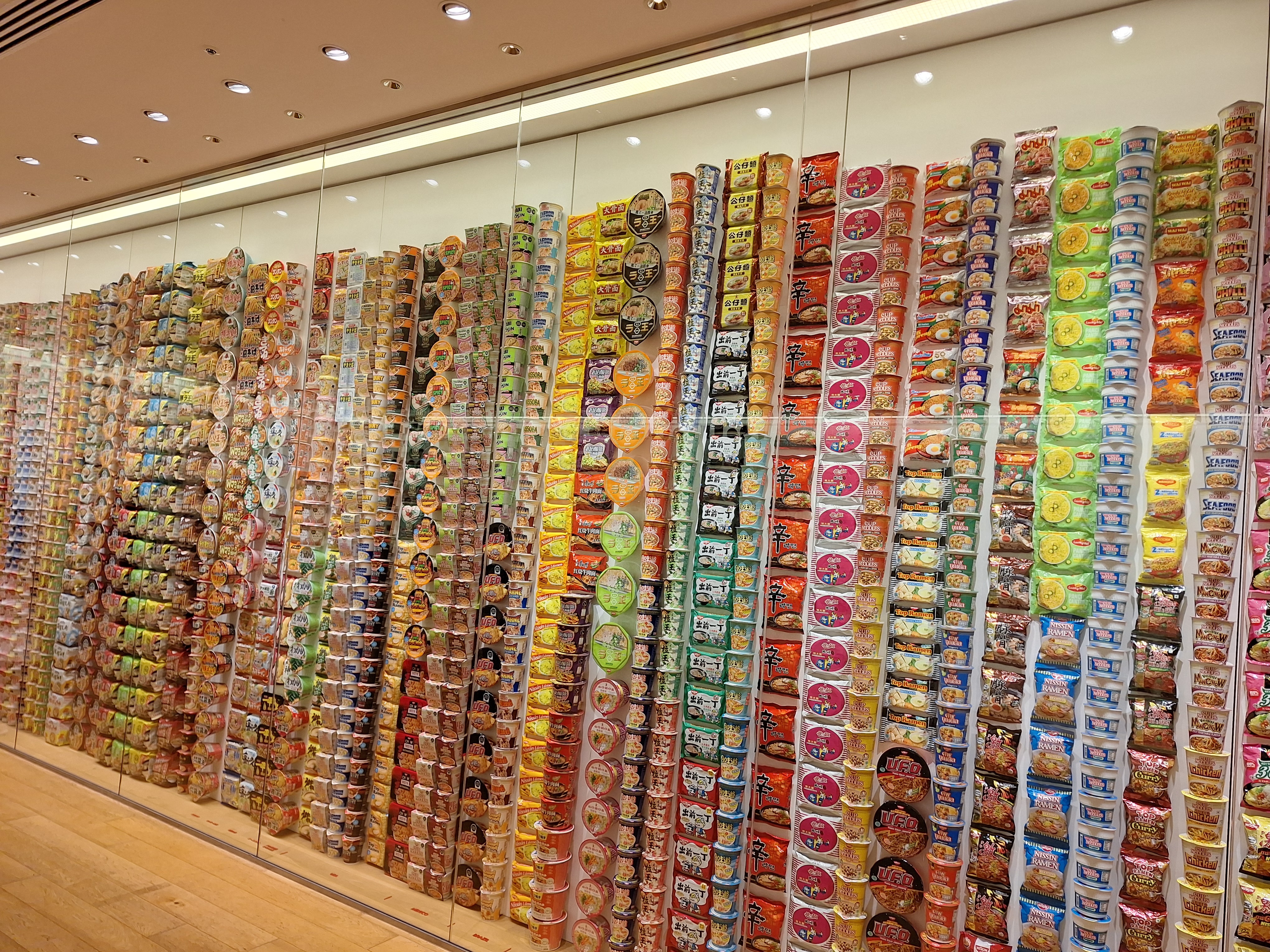 La Cupnoodles a été notre aliment de base au cours des trois mois au Japon…et on mangeait déjà beaucoup de nouilles en Corée. On se devait de visiter ce musée. Pour 2€ environ, on a un plat varié , copieux et complet. Il en existe des milliers au choix et on les trouve partout. Il y a juste à ajouter de l’eau chaude et à remuer.