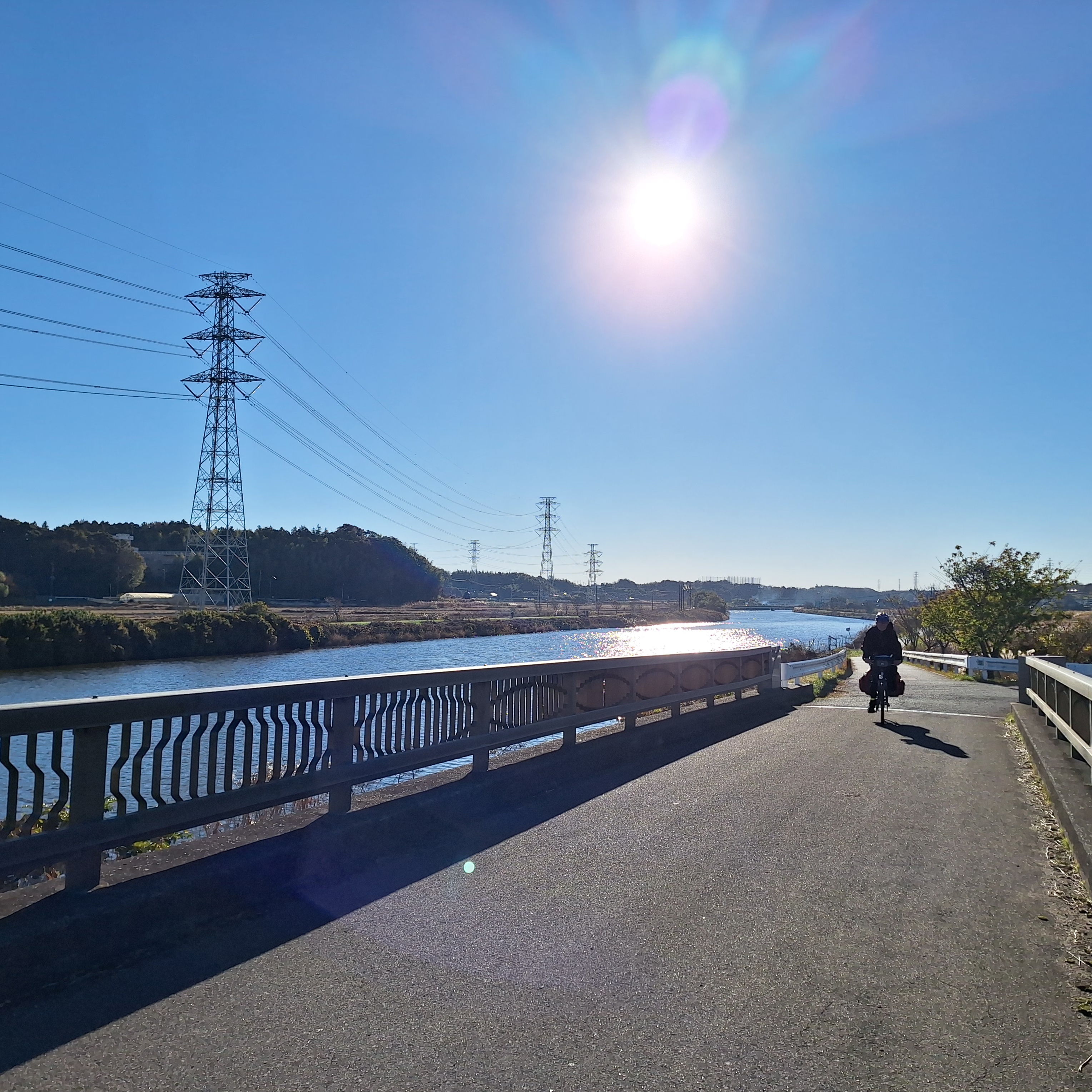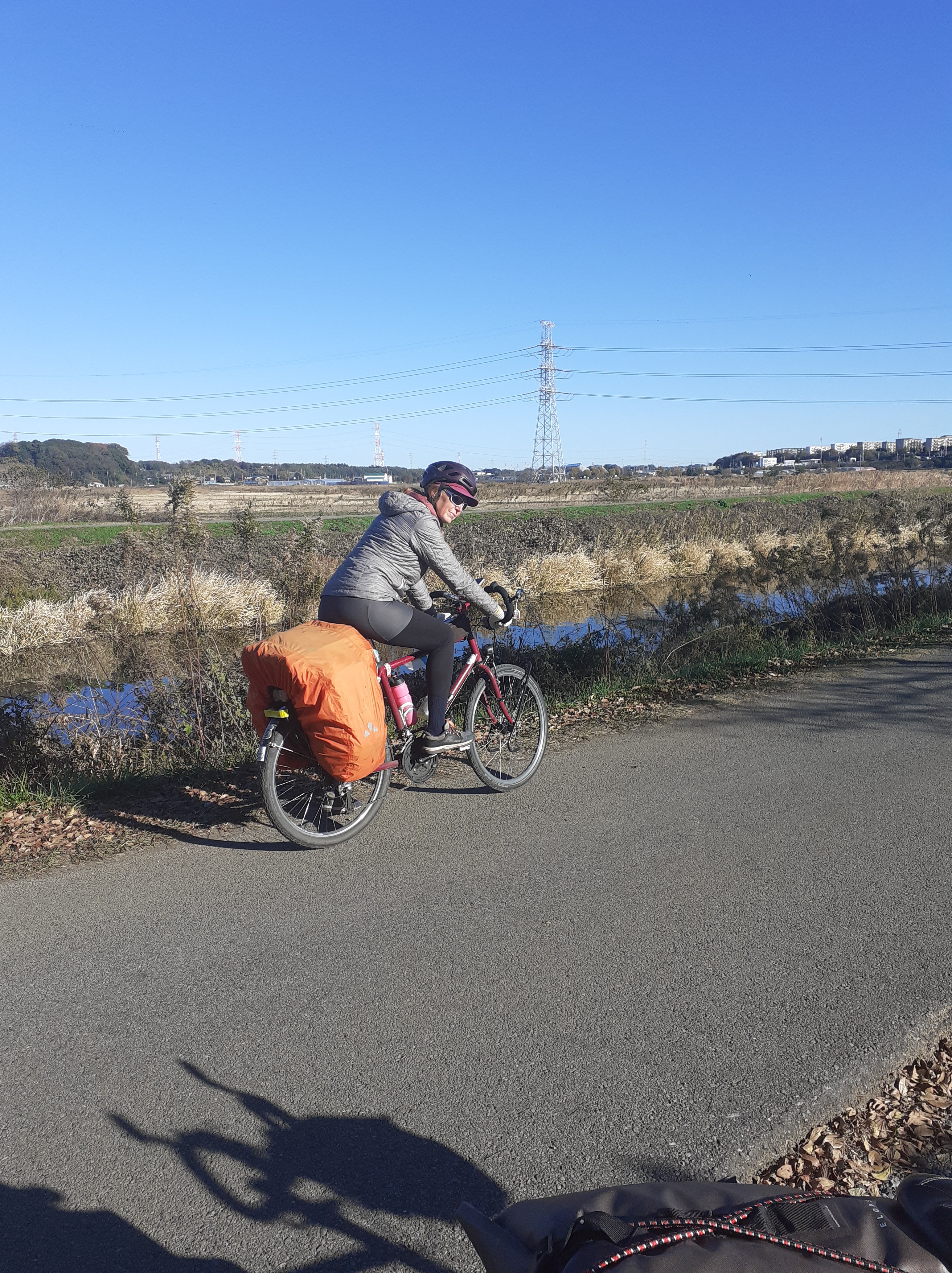 La veille, dernières vues de Tokyo.Hier on a dormi à Funabashi à une trentaine de kilomètres de Tokyo pour avoir une étape plus courte aujourd’hui. On n’imaginait pas rouler sur une telle piste à quelques encablures d’un grand aéroport.Il fait beau mais pas chaud du tout.Ici la Collection Automne Hiver 2023Mais quel bleu !