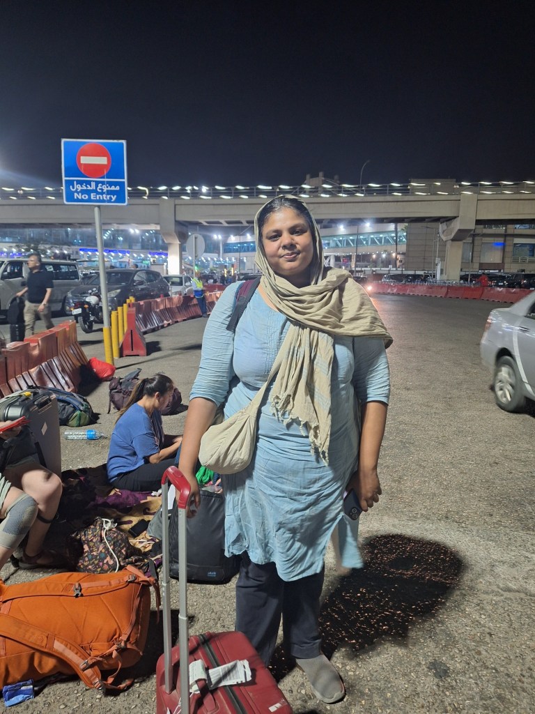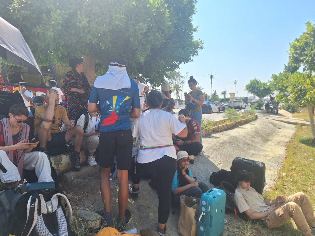 Nos trois minibus finissent par nous laisser sur le parking de l’aéroport. Les derniers marcheurs d’Ismailia seront acheminés par d’autres bus et seront déposés ailleurs . Par les réseaux constitués sur TELEGRAM, on apprend que la plupart ont récupéré leurs passeports. Certains ont vu les nôtres dans la main d’un policier, une fille a vu également celui de son copain qui est dans notre groupe mais n’a pas pu le récupérer, ce qui nous semble normal. La police n’a pas à donner un passeport à une personne qui ne soit pas son propriétaire. On se dit que notre tour va bientôt arriver, le temps que la police s’intéresse à nous. Au retour d’Ismailia, les bus sont revenus par une autre route afin d’éviter que les trois groupes se réunissent. Diviser pour mieux régner, rien de bien nouveau.