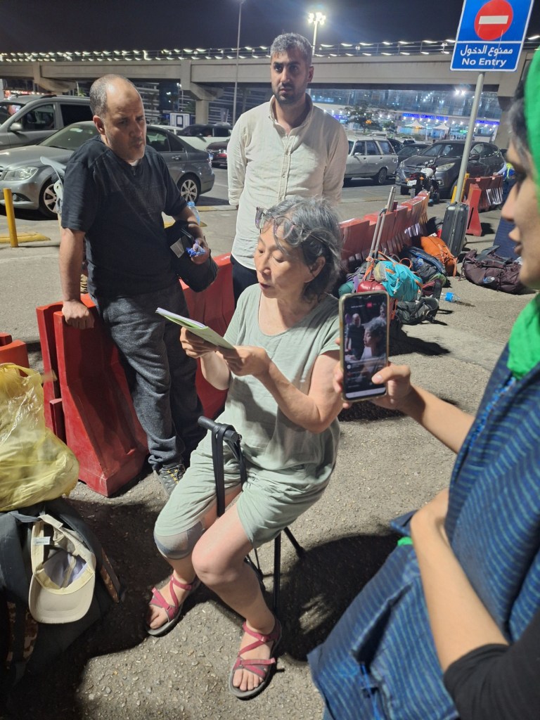 Le Consul de France sera à la hauteur de la situation exceptionnelle qu’il devra gérer avec son personnel. Listing des Français sans passeports, téléphones, mails et surtout, nous trouver une solution pour qu’on ne passe pas une deuxième nuit dehors. Même si tout le monde a de l’argent, il est impossible d’aller dans une chambre d’hôtel sans passeport. D’autre part, le Consul aujourd’hui, puis l’Ambassadeur le lendemain, nous diront que la situation devient très tendue, puisque le même jour, Israël a décidé de bombarder l’Iran ! Le pays a d’autres soucis que la Marche Mondiale vers Gaza. À cette heure, la préoccupation principale de nos diplomates est de renvoyer les Français Marcheurs le plus vite possible en France. Et pour cela, il va falloir ou bien retrouver nos passeports, ou en faire de nouveaux.