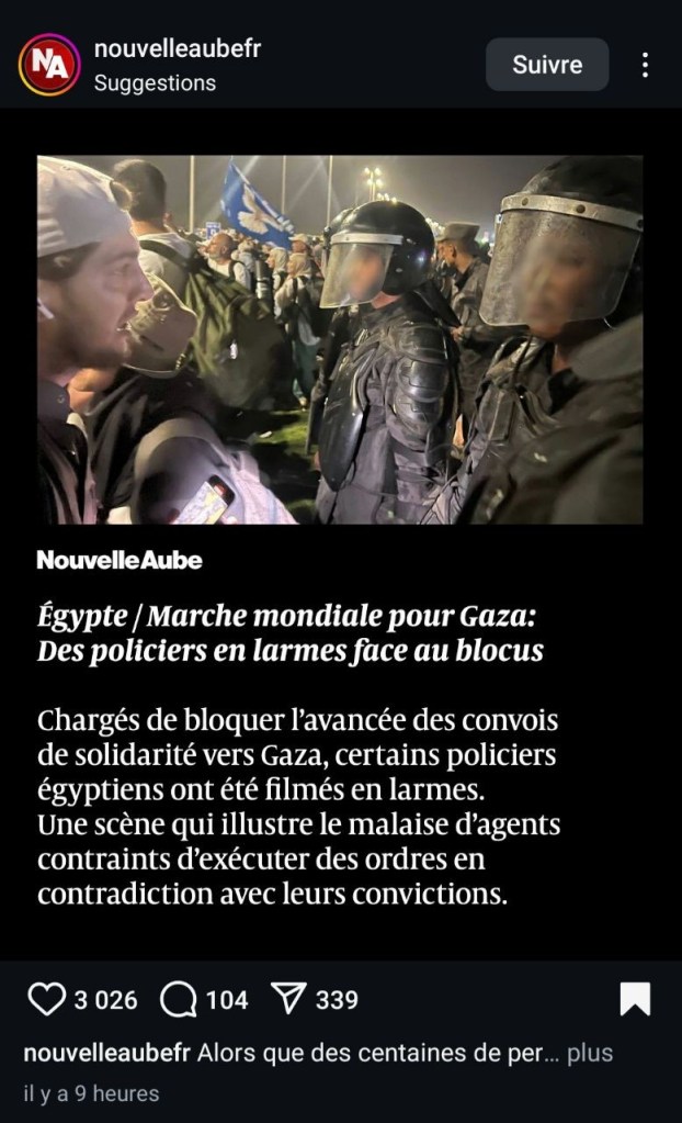 La solidarité entre marcheurs a été remarquable. Un même élan nous a réunis. La même raison d’être là. Avant de tirer des conclusions sur ce qui s’est passé, on tient à partager des vidéos qui ont circulé. Avant tout, on espère que personne n’est encore détenu en Égypte. On a vu passer plusieurs fois des recherches de personnes disparues.