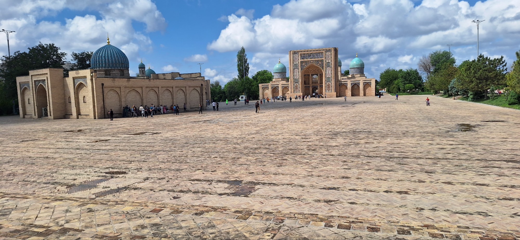 Le quartier de Chorsu est l’un des rares quartiers à ne pas avoir succombé au tremblement de terre de 1966. Ce complexe comprend deux madrasas (école coranique), Mouyi Mubarak et Baraja Khan, deux mosquées et l’institut Islamique Imam Al Bakari. Il a été construit près de la tombe de l´Imam Hazrati (903 – 975) qui,d’après les récits historiques, était un érudit qui parlait 72 langues! Il avait sûrement l’application Duolingo…Il aurait traduit l’ancien testament en arabe, était aussi maître dans la fabrication des clés et de des serrures…!