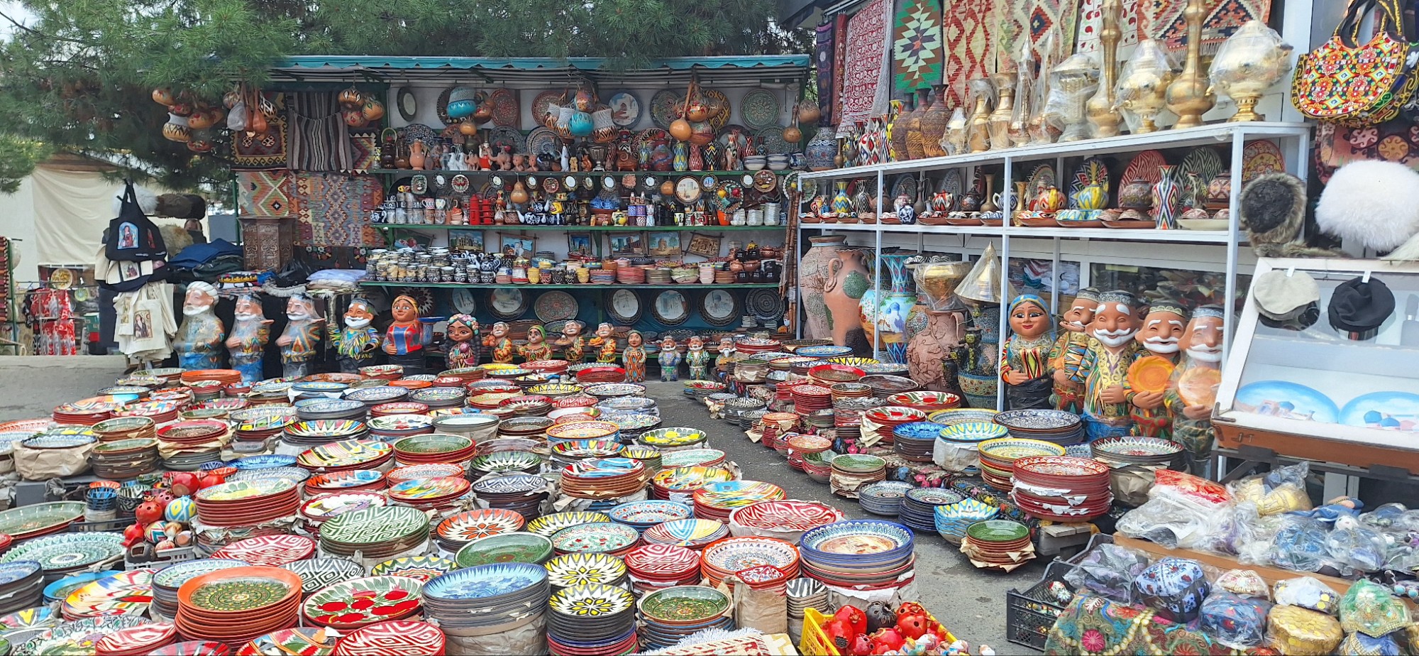 Aller sur les marchés après les mausolées, ça fait du bien ! On renoue avec la vie. Le Chorsu Bazaar comme tous les marchés du pays est un lieu toujours surprenant où on trouve de tout… surtout ce qu’on ne cherche pas.